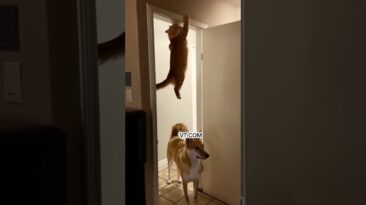The dog is on a full investigation, checking every corner like something serious is going down… meanwhile the cat is literally right above him the entire time. Absolute...